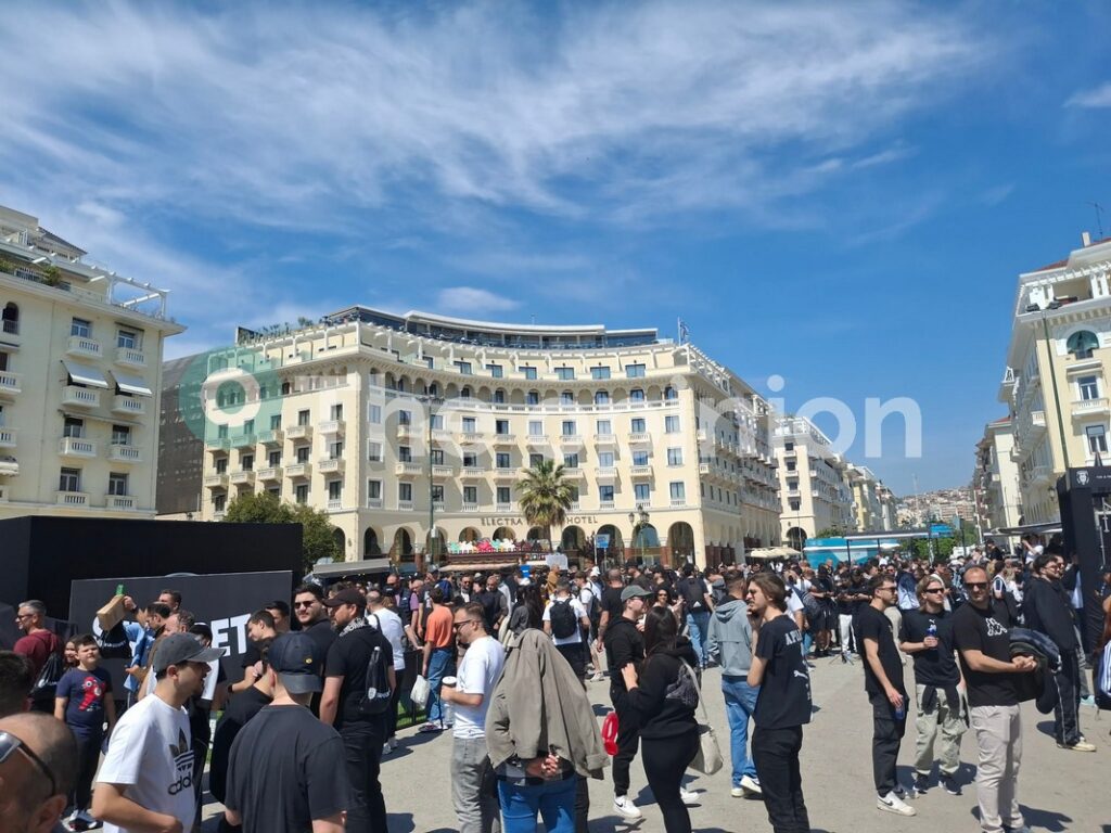 Πέρα από το σημείο όπου διεξάγεται η εκδήλωση, έντονο είναι το «ασπρόμαυρο» στοιχείο σε όλο τον άξονα της Αριστοτέλους, με εκατοντάδες φίλους του ΠΑΟΚ είτε να «κατεβαίνουν» προς το ύψος της παραλίας -όπου γίνεται η εκδήλωση-, είτε να γευματίζουν σε γύρω καταστήματα, φορώντας διακριτικά του συλλόγου της Θεσσαλονίκης.
