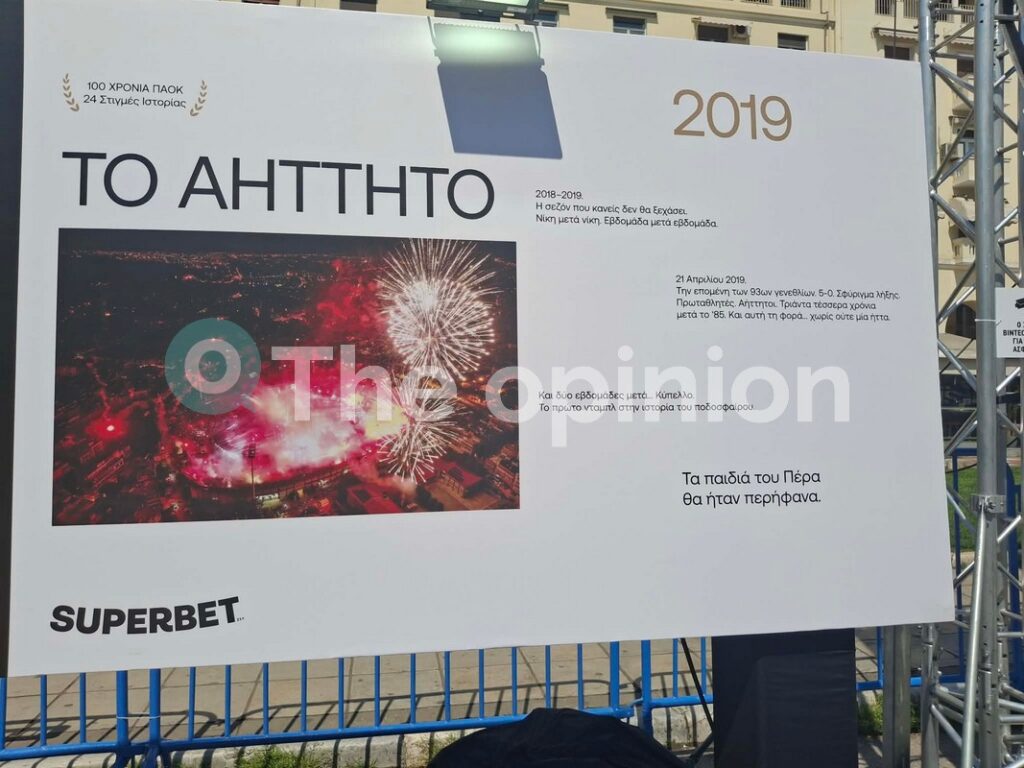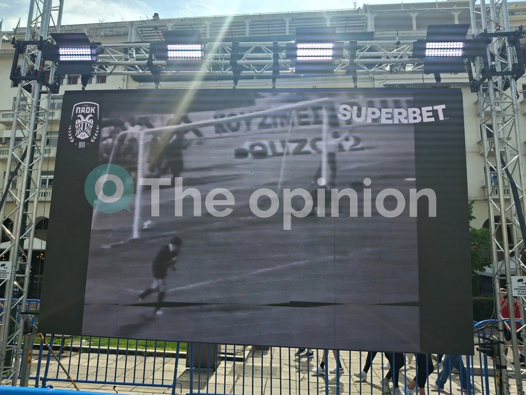 Όπως διαβάσατε νωρίτερα μέσα από το TheOpinion, στην εμβληματική πλατεία της Θεσσαλονίκης έχουν στηθεί οθόνες που προβάλλουν διάφορα ντοκιμαντέρ και «κλιπς» από στιγμές της ιστορίας του «Δικεφάλου του Βορρά», αλλά και στη μνήμη αδικοχαμένων φιλάθλων, πρώην ποδοσφαιριστών, παραγόντων κλπ., ενώ δίπλα από την κεντρική οθόνη έχουν τοποθετηθεί και τρόπαια του ποδοσφαιρικού τμήματος.