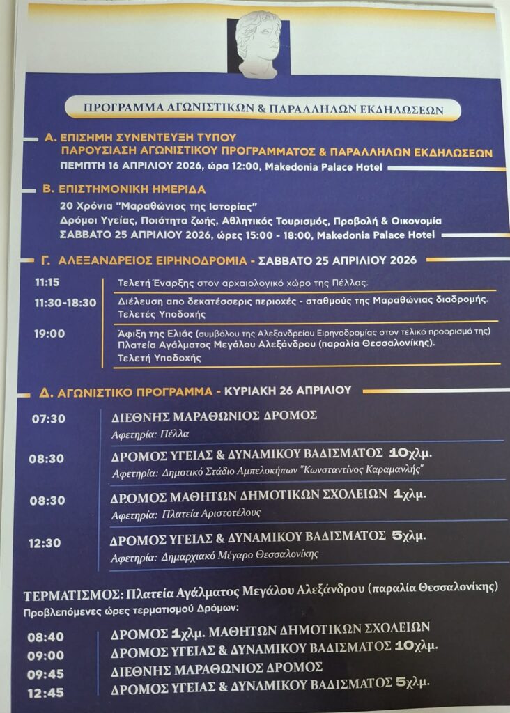 Σήμερα 16 Απριλίου του 2026, 20 χρόνια ακριβώς από την ημέρα που διεξήχθη ο πρώτος Μαραθώνιος (16 Απριλίου 2006), παρουσιάστηκε σε επίσημη συνέντευξη Τύπου το πρόγραμμα του φετινού, ο οποίος θα πραγματοποιηθεί στις 26 Απριλίου, έχοντας ξεχωριστή σημασία, καθώς συμπληρώνονται δύο δεκαετίες από τη έναρξη του.