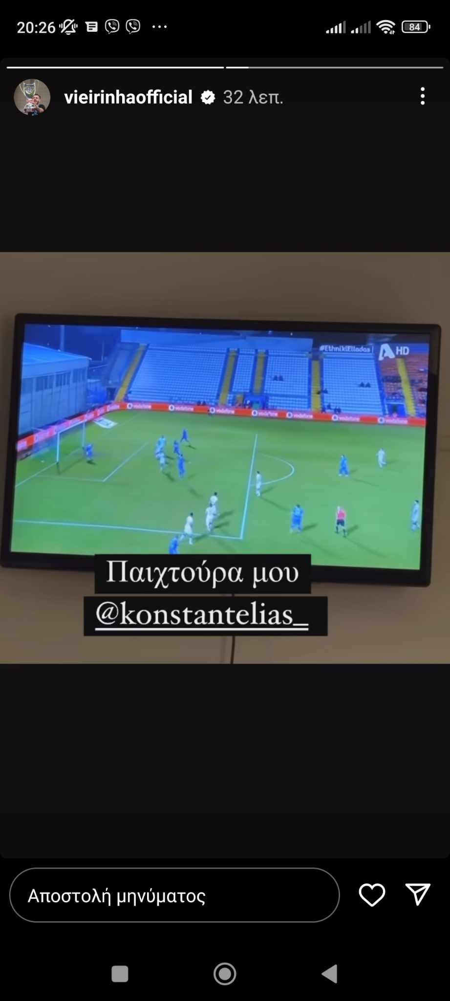 Αποθέωσε τον Κωνσταντέλια ο Βιεϊρίνια: «Παιχτούρα μου» (ΦΩΤΟ)