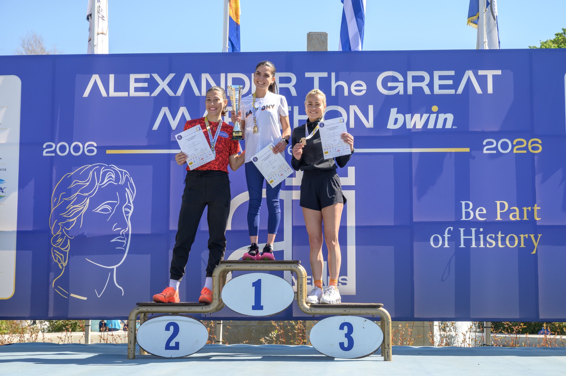 Στον Μαραθώνιο δρόμο, που συνοδεύτηκε από νέο ρεκόρ εγγραφών, οι νικητές στις κατηγορίες Ανδρών και Γυναικών είχαν την ιδιαίτερη τιμή να κόψουν την ίδια κορδέλα που είχε χρησιμοποιηθεί από τους διοργανωτές και στον πρώτο Διεθνή Μαραθώνιο ΜΕΓΑΣ ΑΛΕΞΑΝΔΡΟΣ, πριν από ακριβώς 20 χρόνια. Στον τερματισμό τους υποδέχθηκε, μάλιστα, η εμβληματική Μαρία Πολύζου, Διευθύντρια Ανάπτυξης της διοργάνωσης και κάτοχος του Πανελληνίου ρεκόρ Γυναικών στον Μαραθώνιο από το 1998, κάνοντας ακόμα πιο ξεχωριστή την στιγμή!