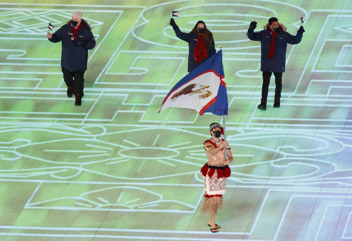 Μπορεί οι καιρικές συνθήκες που επικρατούν στην πρωτεύουσα της Κίνας να ήταν κακές, καθώς η θερμοκρασία ήταν -5 βαθμοί κελσίου, ωστόσο ο σημαιοφόρος της Αμερικανικής Σαμόα παρέλασε με μια τοπική ενδυμασία, όπου ήταν γυμνός από τη μέση και πάνω.