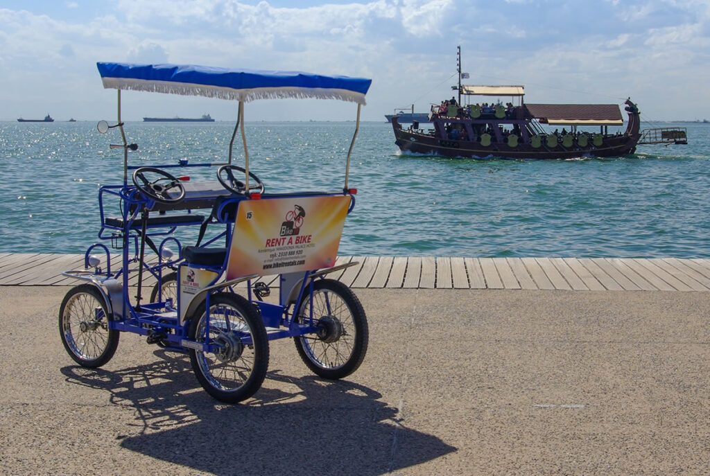 Μust στις βόλτες της παρέας, αποτελούν τα διθέσια και τετραθέσια ποδήλατα, που κλέβουν τις ματιές στο πέρασμά τους. Αν και βρισκόμαστε εν μέσω «δύσκολων καιρών» όλοι που και πού καταφέρνουμε να εξοικονομήσουμε λίγα «ευρωπουλάκια» που απαιτούνται για την ενοικίαση ενός διθέσιου ποδηλάτου. Για μισή ώρα λοιπόν, ένα ποδήλατο γίνεται το μεταφορικό μέσο που μεταφέρει εμάς και τα όνειρά μας, κομψά και με ασφάλεια σε μέρη που μέχρι τώρα δεν είχαμε προσέξει. Μπορεί να ονειρευόμασταν ένα «ανοιχτό τζιπάκι» αλλά ένα τετραθέσιο περιηγητικό ποδήλατο μπορεί και συνδυάζει αρμονικά μία βόλτα όντας ως ξεσκέπαστο!