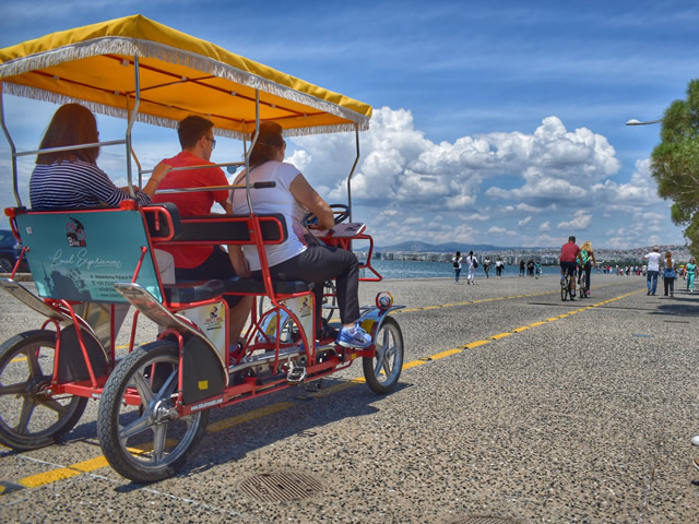 Εδώ και λίγα χρόνια, φαίνεται ότι κάτι έχει αλλάξει στην νέα παραλία της Θεσσαλονίκης. Ένας φρέσκος αέρας, πλέον του Βαρδάρη, διαπερνά την ψυχή και τις σκέψεις όλων όσων επισκέπτονται το παραλιακό μέτωπο της πόλης. Τα ενοικιαζόμενα ποδήλατα στην παραλία, αποτελούν την καλύτερη πρόταση για περιήγηση στα σοκάκια του ιστορικού κέντρου της πόλης, γιατί εκεί κανείς μπορεί να σταθμεύσει άνετα, και με τα πόδια να αναζητήσει “κρυμμένα μυστικά” μιας ιστορίας που αποκαλύπτεται σε όσους την αναζητούν. Μην το σκέφτεστε, δοκιμάστε το!