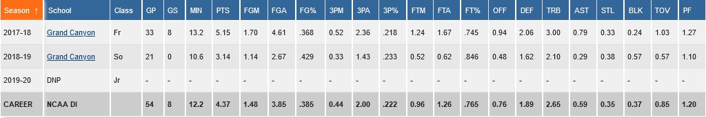 Ξεκίνησε την καριέρα του στους Artland Dragons, όπου αγωνίστηκε τη σεζόν 2016-17. Από το 2017 έως το 2019 φοίτησε στο Grand Canyon, αγωνιζόμενος στους τοπικούς Antelopes.