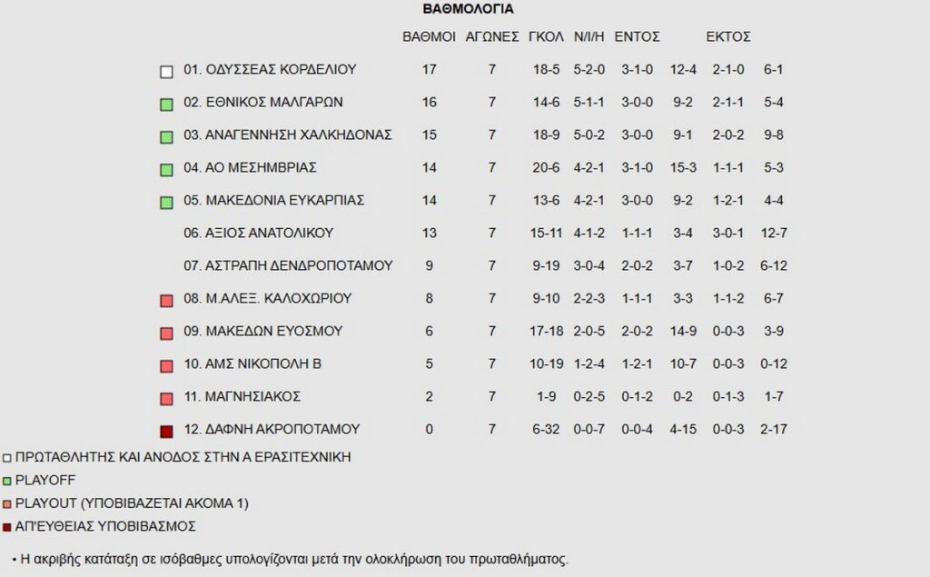 Δεν έχει ηττηθεί εντός, αλλά ούτε και εκτός, ο πρωτοπόρος του πρώτου ομίλου της Β’, Οδυσσέας Κορδελιού. Στον ίδιο όμιλο, επίσης εντός έδρας αήττητοι είναι οι Εθνικός Μαλγάρων, Αναγέννηση Χαλκηδόνας, ΑΟ Μεσήμβριας και Μακεδονία Ευκαρπίας.