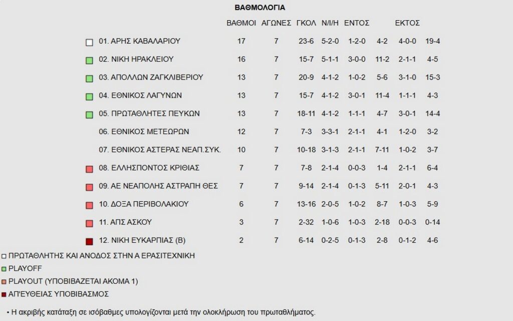Δεν υπάρχει αήττητη ομάδα στον τρίτο όμιλο της Β’, ενώ στον τέταρτο αήττητη παραμένει μόνο η Αναγέννηση Επανομής, παρότι έχει 4 ισοπαλίες σε 7 παιχνίδια.