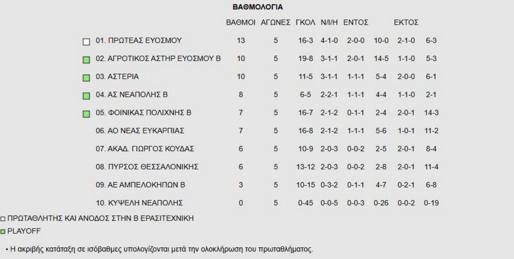 Από την Α1, οι πρωτοπόροι και ισόβαθμοι Φοίνικας Πολίχνης και Παύλος Μελάς κρατούν «απόρθητες» τις έδρες τους. Με 2 νίκες και 3 ισοπαλίες ο Φοίνικας, ενώ το «απόλυτο» στο «σπίτι» του έχει ο Παύλος Μελάς, που μετρά 6 νίκες και καμιά απώλεια.