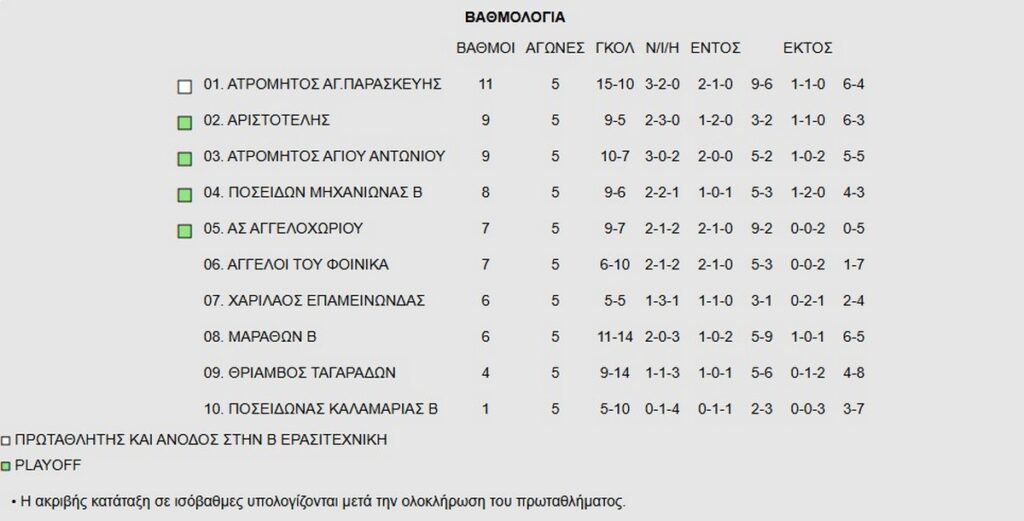 Τρεις ομάδες του τρίτου ομίλου της Α’ βρίσκονται στις πρώτες θέσεις, χωρίς μάλιστα να έχουν ηττηθεί. Πρόκειται για τους Ποσειδώνα Καλαμαριάς, ΑΟ Καρδίας και Μαραθώνα Καλαμαριάς.
