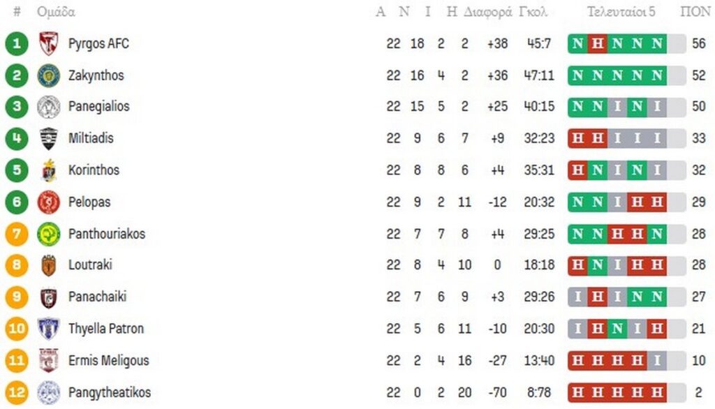 Πανθουριακός, ΑΟ Λουτρακίου και Παναχαϊκή μοιάζουν να έχουν σωθεί πριν καν αρχίσουν τα πλέι άουτ, με τη Θύελλα Πατρών να είναι η μόνη που μπορεί να τους «απειλήσει», καθώς Ερμής Μελιγούς και Πανγυθεατικός έχουν ήδη υποβιβαστεί.