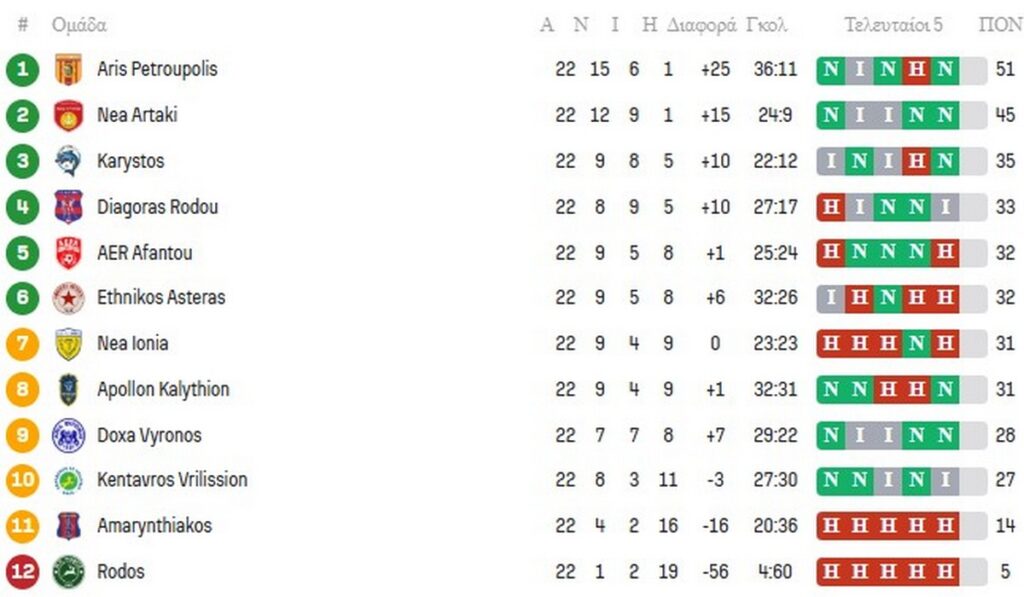 Αμαρυνθιακός και Ρόδος έχουν ήδη υποβιβαστεί, με τέσσερις ομάδες να είναι αυτές που θα κυνηγήσουν την αποφυγή της τρίτης… μη προνομιούχας θέσης. Πιο συγκεκριμένα, Νέα Ιωνία, Απόλλων Καλυθιών, Δόξα Βύρωνος και Κένταυρος Βριλησσίων θα «μονομαχήσουν» για την παραμονή στην τρίτη τη τάξει εθνική κατηγορία.