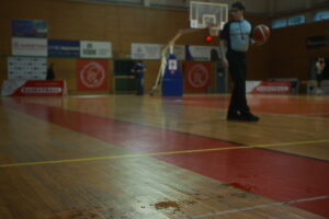 Λόγω της δυνατής βροχής η οροφή άρχισε να στάζει στο παρκέ και στις κερκίδες και λόγω αυτού η αναμέτρηση διακόπηκε.