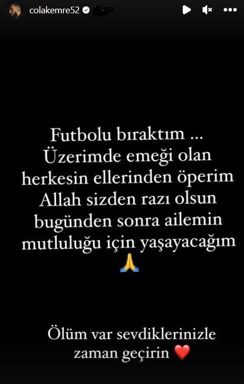 «Σταμάτησα το ποδόσφαιρο… Φιλάω τα χέρια όλων όσοι έχουν δουλέψει με εμένα. Ο Θεός να σας έχει καλά. Από σήμερα, θα ζω για την ευτυχία της οικογένειάς μου. Υπάρχει θάνατος, περάστε χρόνο με τους αγαπημένους σας»