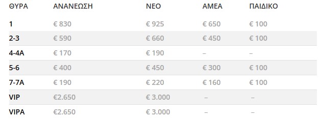 *Στις τιμές συμπεριλαμβάνεται ΦΠΑ