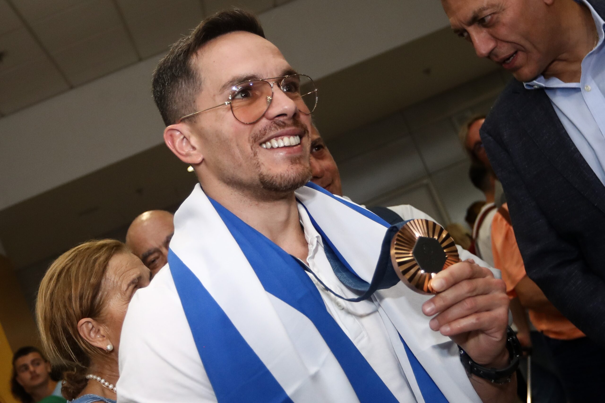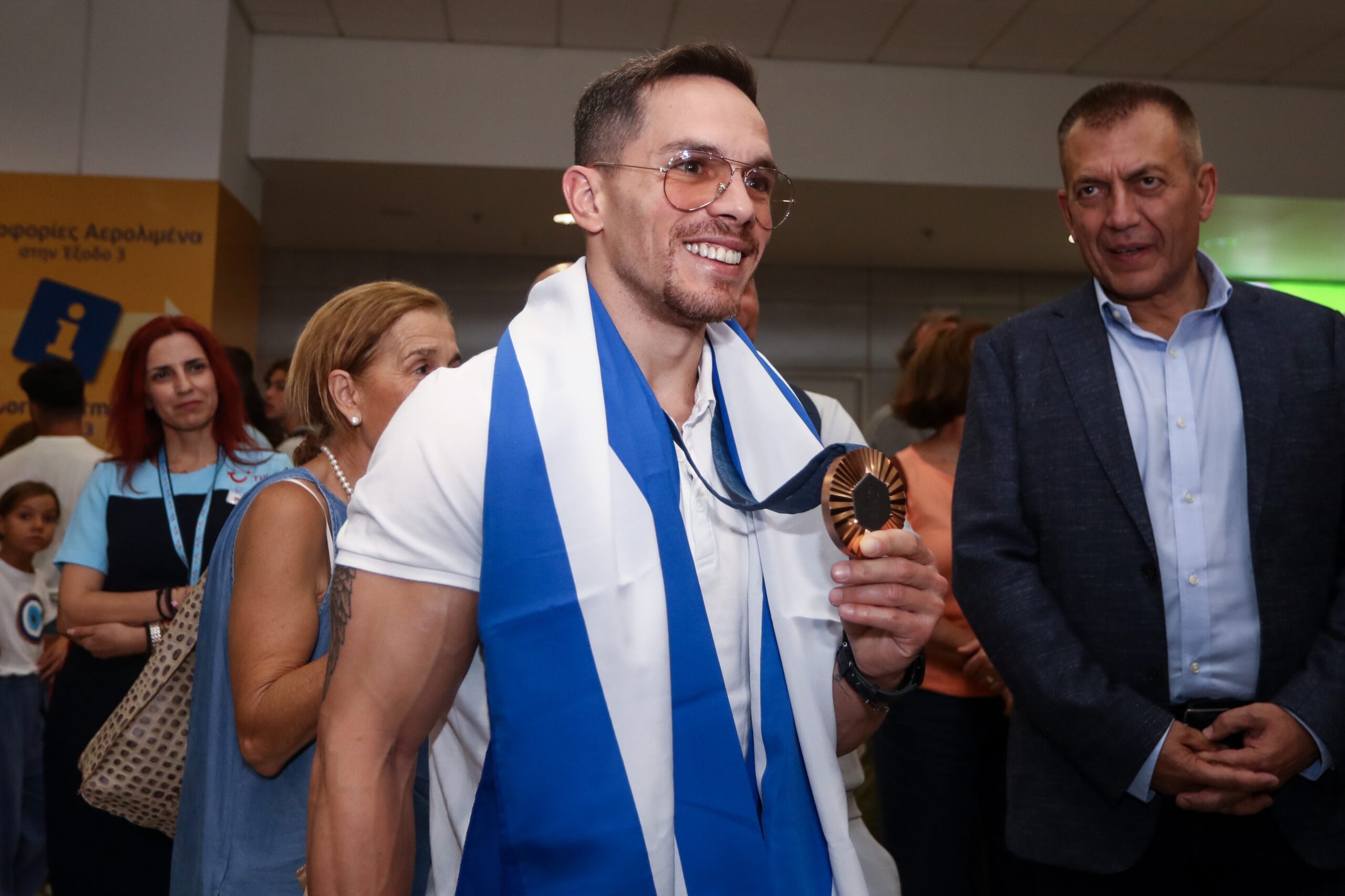 Με το 3ο Ολυμπιακό μετάλλιο στην καριέρα του. Εκεί τον περίμενε ο αναπληρωτής υπουργός Αθλητισμού Γιάννης Βρούτσης.
