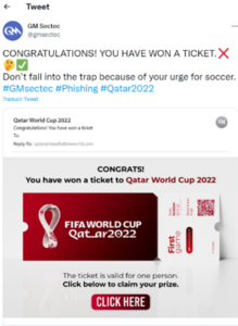 Όπως σε κάθε μεγάλη διοργάνωση που προσελκύει το ενδιαφέρον όλου του κόσμου, έτσι και με αφορμή του Μουντιάλ 2022 οι επιτήδειοι στο διαδίκτυο χρησιμοποιούν πάντα τον θόρυβο που περιβάλλει τέτοιες μεγάλες διοργανώσεις για να εξαπατήσουν. Η ομάδα της ESET παρουσιάζει μερικά παραδείγματα για το πώς οι απατεώνες ανεβάζουν στροφές ενόψει της επερχόμενης διοργάνωσης και ποια είναι τα 7 βήματα που μπορούμε να κάνουμε για να μην πέσουμε θύμα των τεχνασμάτων που χρησιμοποιούν.
