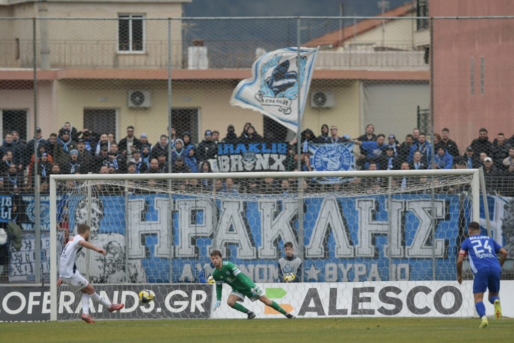 Τεράστια ευκαιρία στο 77΄ για τον Ηρακλή, με τον Βρακά να αποκρούει εξ’ επαφής και να λέει «όχι» στο κοντινό δυνατό σουτ του Μάναλη.
