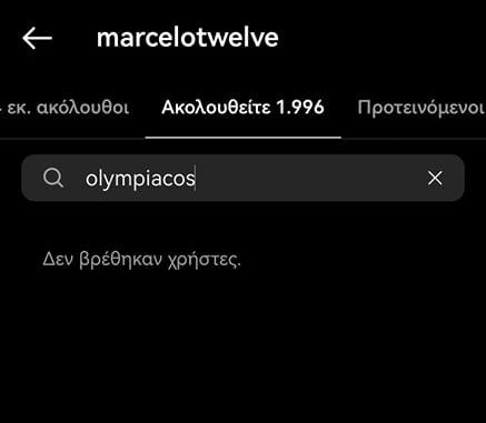 Πιο συγκεκριμένα, αν αναζητήσει κανείς τους λογαριασμούς που ακολουθεί ο Μαρσέλο θα διαπιστώσει πως σε αυτούς δεν βρίσκεται ο επίσημος λογαριασμός των ερυθρόλευκων, ενώ ο Ολυμπιακός «ακολουθεί» κανονικά εκείνον του παίχτη: