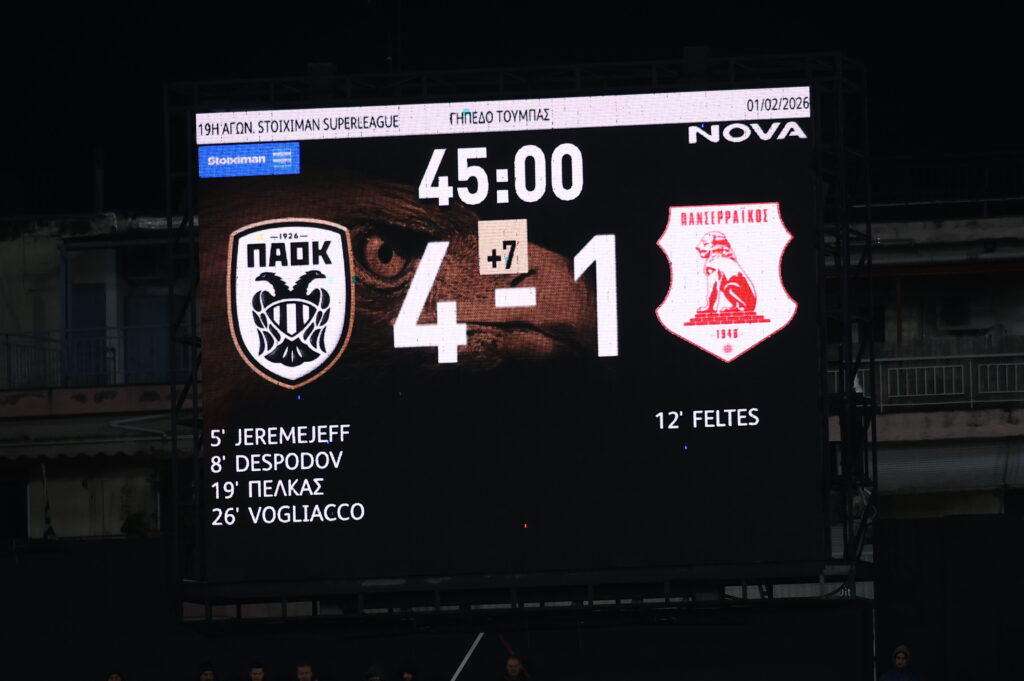 Με τον δείκτη του σκορ στο 4-1 από το πρώτο μέρος, το δεύτερο έμοιαζε διαδικαστικό, ειδικά σε μία τέτοια συνθήκη υπό την οποία διεξαγόταν η αναμέτρηση, με τον ρυθμό να είναι ιδιαίτερα χαμηλός και τις φάσεις ελάχιστες, με μοναδική αξιόλογη το συρτό σουτ του Πέλκα λίγο έξω από την περιοχή (στο 62′), που πέρασε άουτ. Κάπως έτσι και με το γκολ του Χατσίδη στο 90′ να ακυρώνεται, αυτό το ιδιαίτερο παιχνίδι ολοκληρώθηκε με 4-1, με όλα τα τέρματα να έχουν μπει στο πρώτο ημίχρονο.