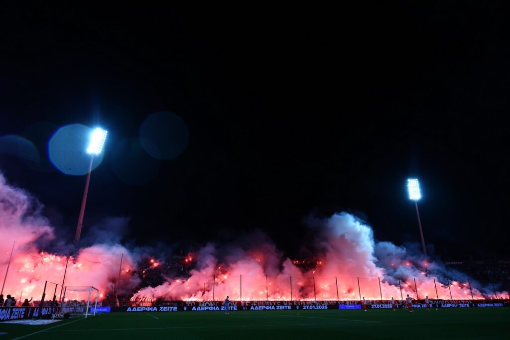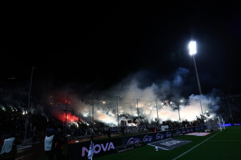 ‘Ένα λεπτό μετά, με τη συμπλήρωση των 27′, η Τούμπα «κοκκίνισε» από τους πυρσούς, συμβολικά σε εκείνο το λεπτό, διότι το τραγικό δυστύχημα συνέβη στις 27 Γενάρη, με το παιχνίδι να διακόπτεται για 7-8 λεπτά, μέχρι να καθαρίσει η ατμόσφαιρα.