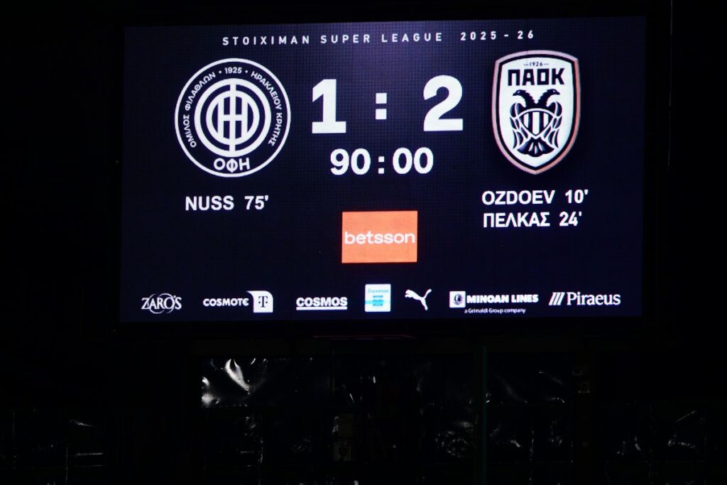 Στο δεύτερο ημίχρονο, ο ρυθμός έπεσε, ο «Δικέφαλος» είχε την ευκαιρία να «τελειώσει» το ματς με το χαμένο πέναλτι του Ζίβκοβιτς, ωστόσο εκεί που όλα έδειχναν νίκη με σχετική άνεση, οι Κρητικοί ξανά μπήκαν στο παιχνίδι με το γκολ του Νους στο 75′, βάζοντας «φωτιά» ενόψει του τελευταίου τετάρτου συν τις καθυστερήσεις. Η αρχική πίεση του ΟΦΗ δεν έφερε… απρόοπτα, οι Θεσσαλονικείς κράτησαν το υπέρ τους αποτέλεσμα και παρέμειναν στην κορυφή της βαθμολογίας, έχοντας «συγκάτοικους» τον Ολυμπιακό και τον ΑΕΚ, αμφότεροι με 9 βαθμούς, έχοντας πετύχει το «απόλυτο» μέχρι στιγμής.