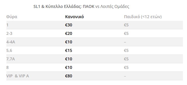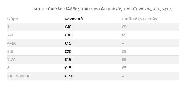 Επίσης, για όλες τις θύρες εκτός της 4-4Α και των VIP θα ισχύει το παιδικό εισιτήριο (για κάτω των 12 ετών), το οποίο θα κοστίζει 5 ευρώ.