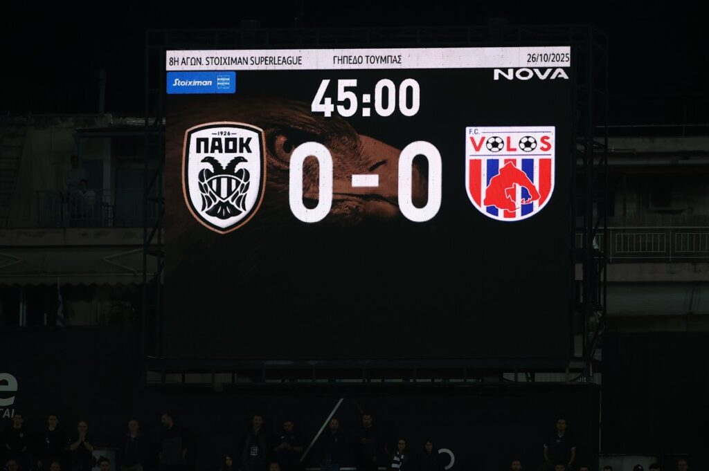Ο αγώνας ξεκίνησε και κύλησε καθ’ όλη τη διάρκεια του πρώτου ημιχρόνου, με τον ΠΑΟΚ να ελέγχει τον ρυθμό και τον Βόλο να περιμένει στο μισό γήπεδο, προσπαθώντας να απειλήσει στην αντεπίθεση.