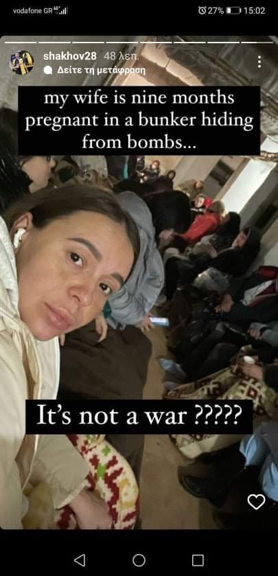 «Η σύζυγός μου είναι εννέα μηνών έγκυος σε ένα καταφύγιο, στην προσπάθειά της να κρυφτεί από τις βόμβες. Δεν είναι πόλεμος;;;;», έγραψε ο ποδοσφαιριστής της Ένωσης.