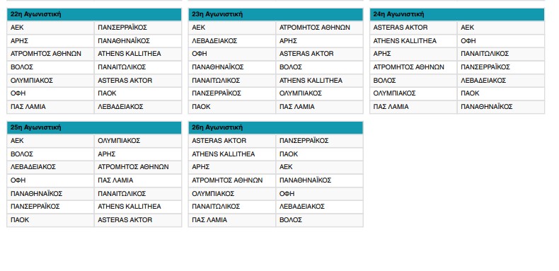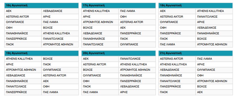 Οι 26 αγωνιστικές της κανονικής διάρκειας Super League