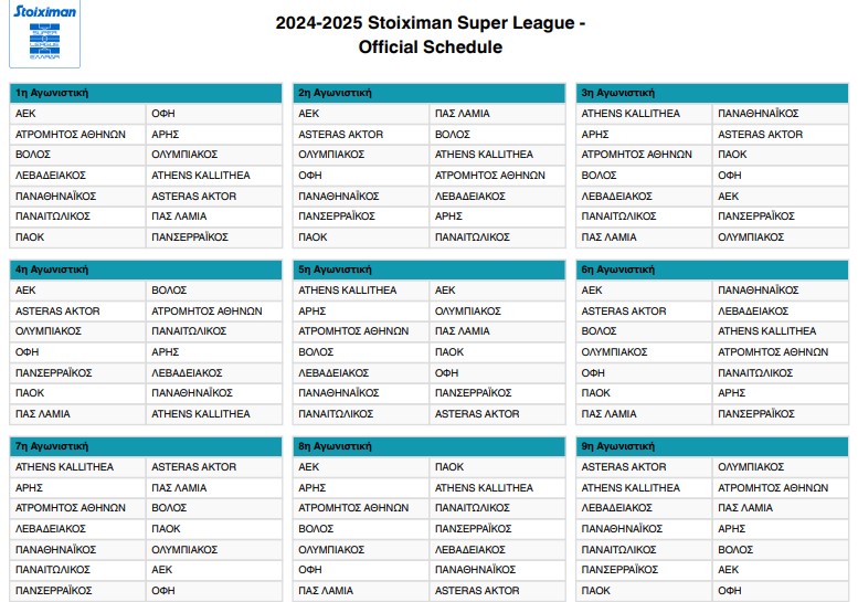 Super League: Όλο το πρόγραμμα της σεζόν 2024-2025 (ΦΩΤΟ)
