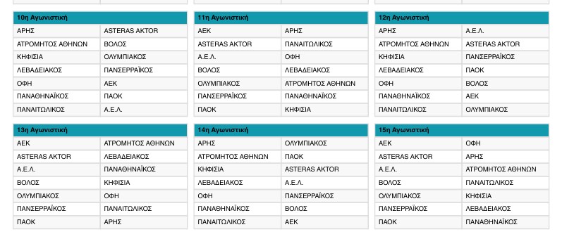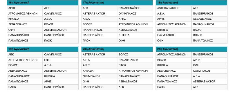 Ακολουθώντας το μοντέλο των «μεγάλων» πρωταθλημάτων, στη φετινή Super League ο δεύτερος γύρος έχει διαφορετικό πρόγραμμα σε σχέση με τον πρώτο. Παραδείγματος χάρη, το ΠΑΟΚ-Άρης του πρώτου γύρου διεξάγεται την 13η και τελευταία αγωνιστική, ενώ το Άρης-ΠΑΟΚ του δευτέρου, θα πραγματοποιηθεί την 23η αγωνιστική.