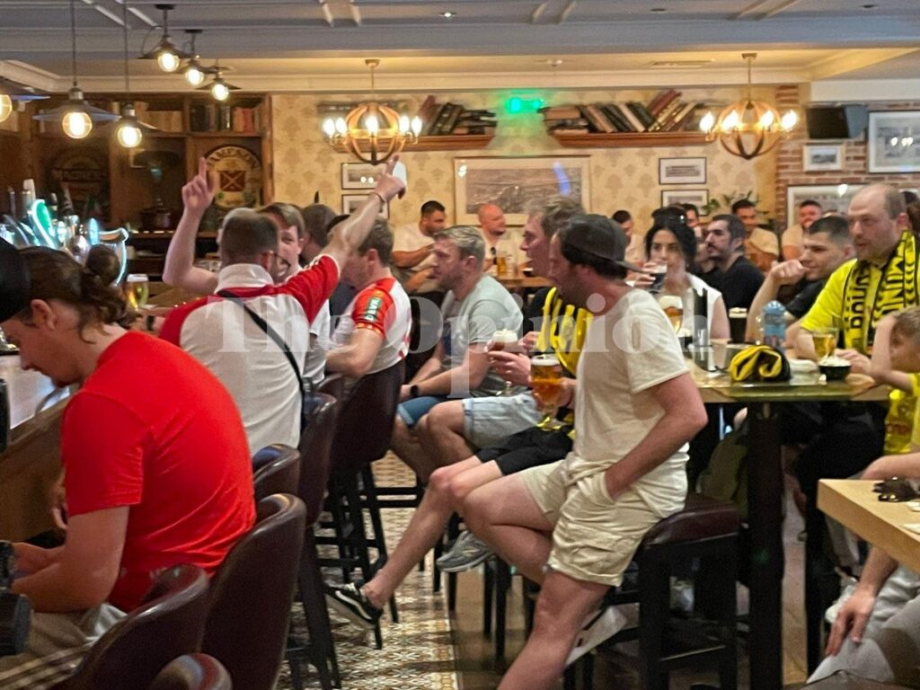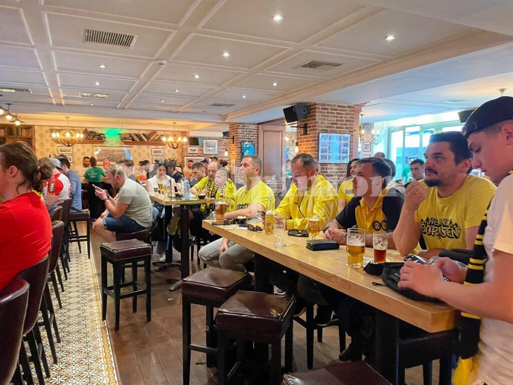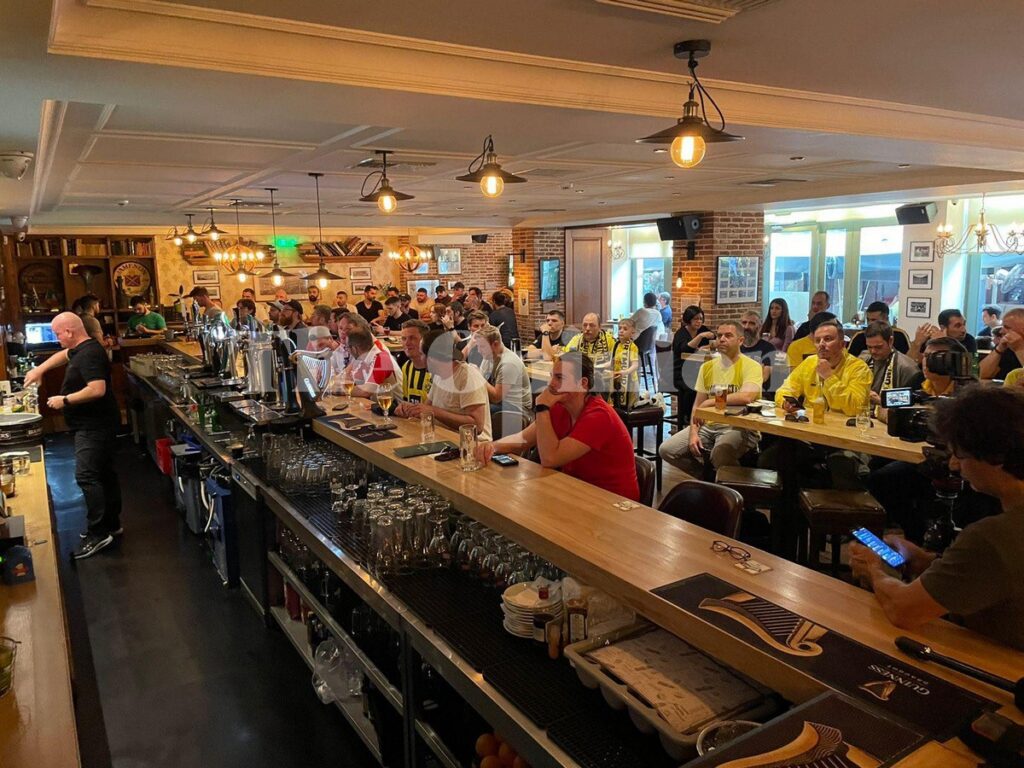 Οι φίλοι της Ντόρτμουντ συγκεντρώθηκαν σε μαγαζί στα Λαδάδικα για να γιορτάσουν το πρωτάθλημα της αγαπημένης τους ομάδας.