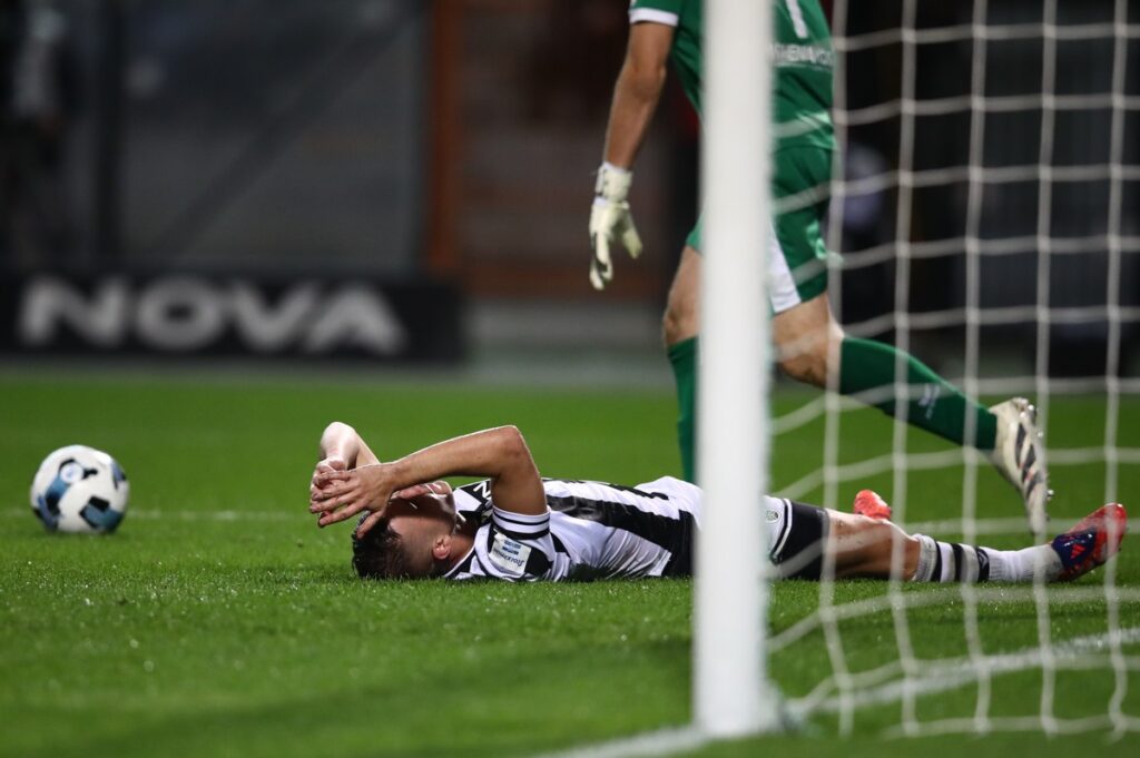 Στο 31′, ο ΠΑΟΚ έχασε σπουδαία ευκαιρία να ανοίξει το σκορ. Κάθετη του Ζίβκοβιτς στον Οζντόεφ που πάτησε περιοχή και από πλάγια θέση πλάσαρε προς την εστία, στην έξοδο του Ξενόπουλου, με τον Σιμόν όχι μόνο να αποσοβεί το 1-0 πάνω στην γραμμή, αλλά και να κερδίζει το φάουλ από τον Πέλκα, που ερχόταν… φορτσάτος.