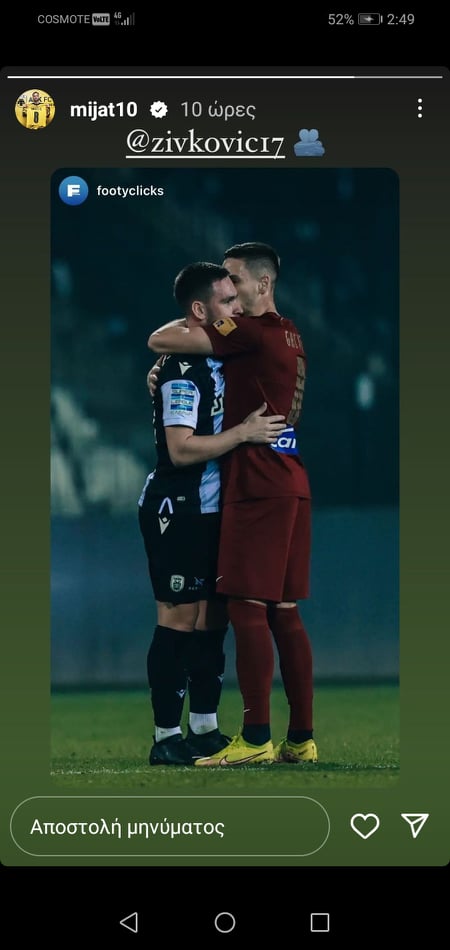 Πιο συγκεκριμένα, Αντρίγια Ζίβκοβιτς και Μιγιάτ Γκατσίνοβιτς είχαν μία πολύ όμορφη στιγμή μετά το τέλος του αγώνα, με τους Σέρβους των «δικεφάλων» να αγκαλιάζονται και να τα λένε… εν τάχει, δίνοντας μία διαφορετική νότα και στέλνοντας το μήνυμα ότι το ποδόσφαιρο ενώνει.