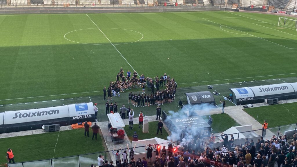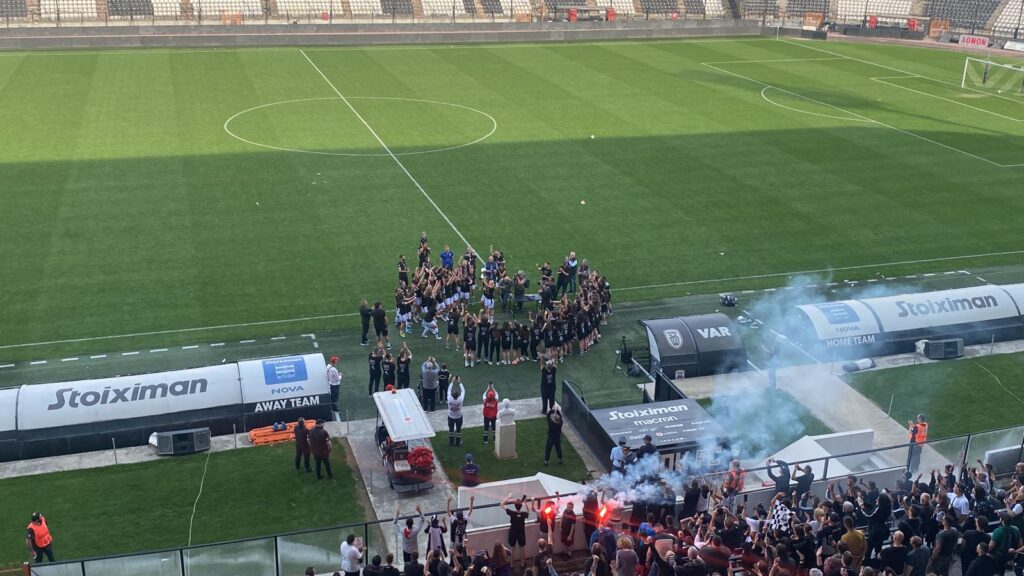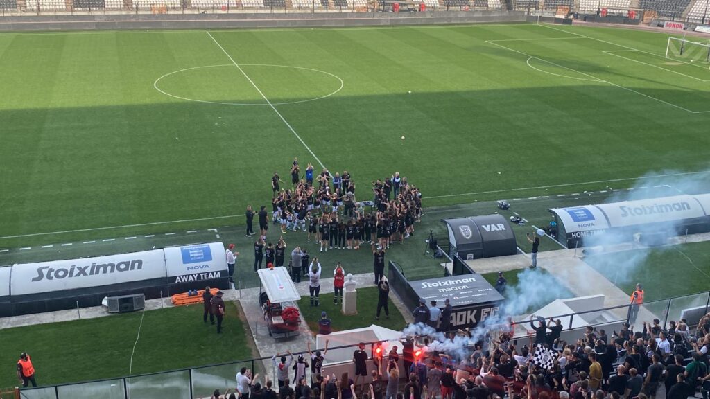 Μετά τη λήξη του αγώνα, ακολούθησε η φιέστα του Δικεφάλου, με τις αθλήτριες να παίρνουν τα μετάλλια τους και την αρχηγό, Θώμη Βαρδαλή, να σηκώνει την κούπα του πρωταθλήματος στον… ουρανό της Τούμπας, λαμβάνοντας την αποθέωση από περίπου 500 φίλους του ΠΑΟΚ.