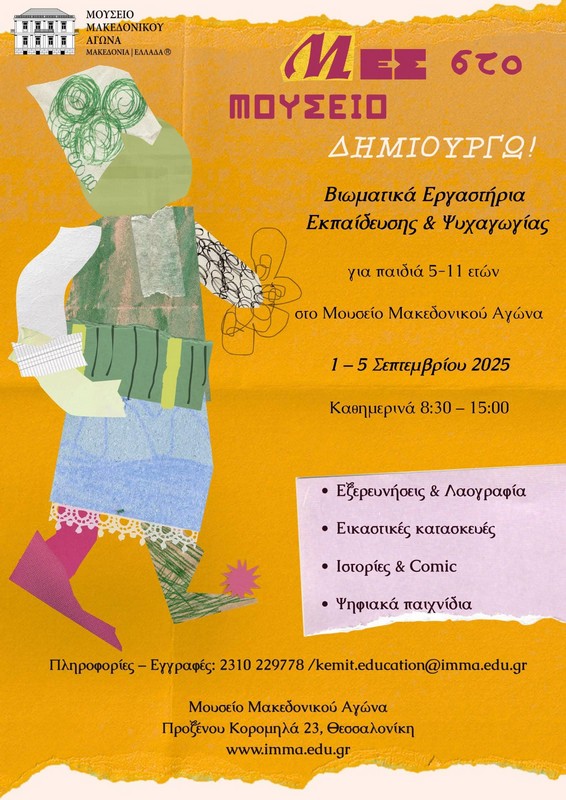 Γι’ αυτό και οι πρωτοβουλίες που απευθύνονται στα παιδιά είναι ζωτικής σημασίας. Ένα χαρακτηριστικό παράδειγμα αποτελεί το Μουσείο Μακεδονικού Αγώνα στη Θεσσαλονίκη, το οποίο διοργανώνει τακτικά εκπαιδευτικά εργαστήρια για παιδιά 5 έως 11 ετών, ειδικά κατά την περίοδο των σχολικών διακοπών. Μέσα από δραστηριότητες όπως εικαστικές κατασκευές, αθλητικά παιχνίδια, δημιουργία μικρών ιστοριών comics, εκπαιδευτικούς περιπάτους και workshops, τα παιδιά έχουν την ευκαιρία να απασχοληθούν δημιουργικά και ταυτόχρονα να γνωρίσουν τον χώρο του Μουσείου, να αλληλεπιδρούν με το περιεχόμενό του και να συνδέσουν την Ιστορία με τη δημιουργικότητα και το παιχνίδι.