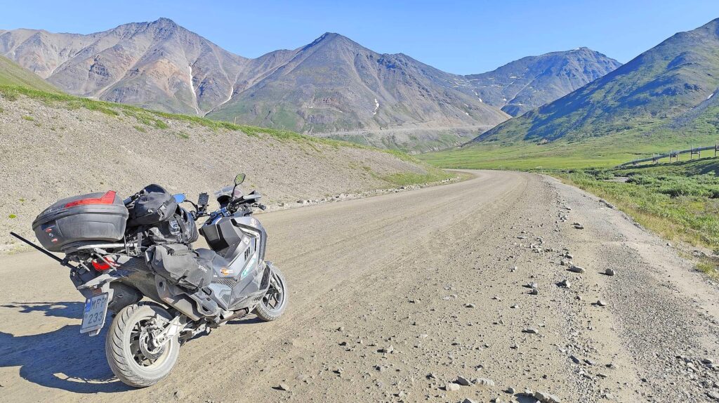 Καθώς τα χιλιόμετρα περνούσαν, η μεταμόρφωση της τοπικής φύσης ήταν εμφανέστατη, με τις δασοσκέπαστες εκτάσεις να δίνουν σταδιακά την θέση τους σε μια εκτεταμένη βλάστηση τούνδρας – τυπικό αρκτικό τοπίο! Σημείο αναφοράς της διαδρομής Coldfoot–Deadhorse αποτέλεσε το θεαματικό ορεινό πέρασμα Atigun Pass (1.470 m), ενώ ο χωμάτινος Dalton Highway (για τουλάχιστον 80 χλμ.) με προβλημάτισε και με κούρασε αρκετά. Αποζημιώθηκα όμως στα τελευταία 100 χλμ., αφού ένας νεότευκτος ασφάλτινος δρόμος φρόντισε να οδηγήσει γρήγορα και ξεκούραστα το SYM ADXTG 400 στις ακτές του Αρκτικού Ωκεανού…