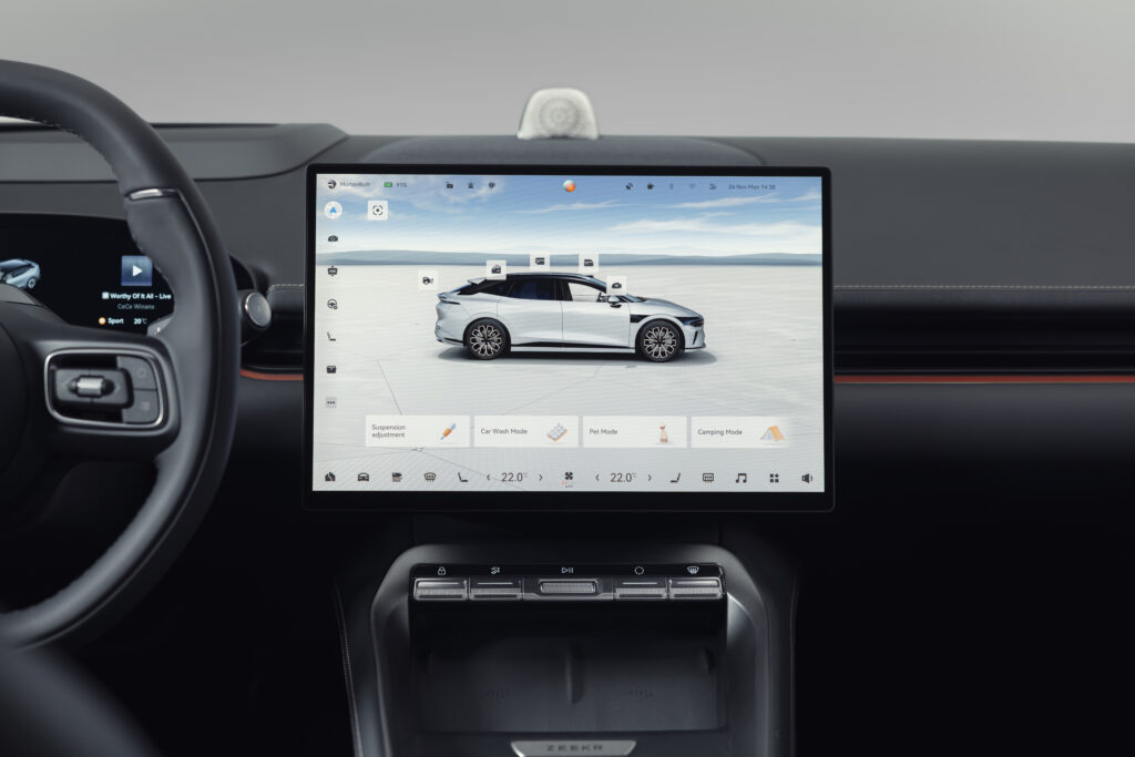 Με προσεκτικά μελετημένη αισθητική και έμφαση στη λεπτομέρεια, κάθε στοιχείο του Zeekr 7GT, από το πλαίσιο και το σύστημα διεύθυνσης έως τα φρένα και τα ελαστικά, έχει σχεδιαστεί για να προσφέρει αίσθηση ελέγχου, άνεση και οδηγική απόλαυση. Το εσωτερικό αποπνέει premium χαρακτήρα, με έξυπνες λύσεις και δυνατότητες εξατομίκευσης που αναβαθμίζουν την καθημερινή εμπειρία. Η εμπειρία ξεκινά από την είσοδο στο αυτοκίνητο, με οθόνη Head-Up Display επαυξημένης πραγματικότητας 35,5’’, σε συνδυασμό με ψηφιακό πίνακα οργάνων 13’’, προσφέροντας πληροφόρηση με τρόπο άμεσο και διαισθητικό.