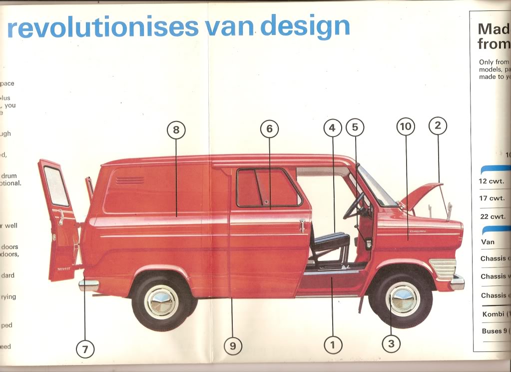 «Κάθε καταστηματάρχης, εργολάβος, οδηγός ασθενοφόρου οχήματος, οικοδόμος, αρτοποιός, κατασκευαστής κεριών ή παραθεριστής μπορεί να βρει στο Ford Transit αυτό που καλύπτει τις δικές του ιδιαίτερες ανάγκες», ανέφερε το πρώτο επίσημο δελτίο Τύπου της Ford το 1965.