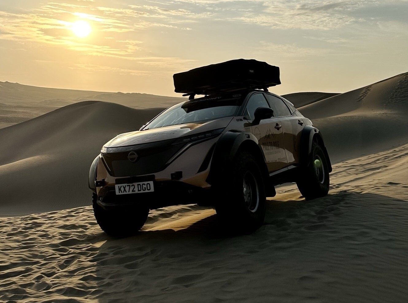 Η οδήγηση στο Pan American highway ήταν εύκολη δουλειά για το Expedition Ariya, ενώ στη συνέχεια βγαίνοντας στους αμμώδεις δρόμους της ερήμου, το χάλκινο χρώμα του αυτοκινήτου καμουφλαρίστηκε στα εκπληκτικά χρυσαφένια τοπία. Φτάνοντας στην όαση της ερήμου της Ica, όπου βρίσκονται οι μεγαλύτεροι αμμόλοφοι της ηπείρου, το δίδυμο ξέκλεψε λίγο χρόνο, και το Aryia αποδείχτηκε ως ο απόλυτος συνεργάτης για sand-surfing, κατακτώντας αβίαστα αυτό το ιδιαίτερο έδαφος. Τα ελαστικά ξεφουσκώθηκαν, ανακατανέμοντας το βάρος για να αποκτήσουν επιπλέον πρόσφυση στην χρυσή θάλασσα από άμμο. Ο συνδυασμός του συστήματος τετρακίνησης e-4ORCE με τον διπλό κινητήρα του Aryia και την τέλεια κατανομή της ισχύος είχε ως αποτέλεσμα μια ομαλή και σταθερή οδήγηση – μια απόδειξη της ποιότητας, και του εξαιρετικού σχεδιασμού του αυτοκινήτου.