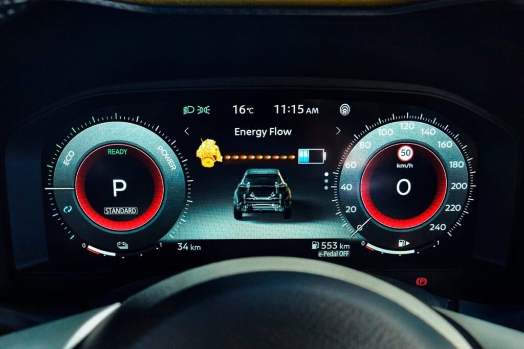 Το ταμπλό του Nissan Juke με την οθόνη οργάνων 12,3’’ είναι από τα ωραιότερα στην αγορά, γιατί απλά δεν ενοχλεί τον οδηγό του, καθώς δεν αποσπά την προσοχή του. Μου άρεσε η οθόνη του infotainment αλλά περισσότερο μου άρεσε το ψηφιακό καντράν, που ενσωματώνει πάρα πολλές λειτουργίες, όπως το profile ροής ενέργειας που εμφανίζει όλη τη διαδρομή κατανομής, η οποία για κάποιο λόγο αφαιρεί το άγχος της αυτονομίας! Βέβαια, σε αυτό συντελεί και ο δείκτης ενέργειας της μπαταρίας, ο οποίος κάνει ωραία «δουλίτσα». Όπως και η απρόσκοπτη συνδεσιμότητα με την οποία απόλαυσα μέσω του smartphone τον προηγμένο κόσμο του Juke, η οποία μέσω του Nissan Intelligent Mobility, με έκανε να αγαπήσω ξανά τον δρόμο, χάρις την ευκολία χρήσης του.