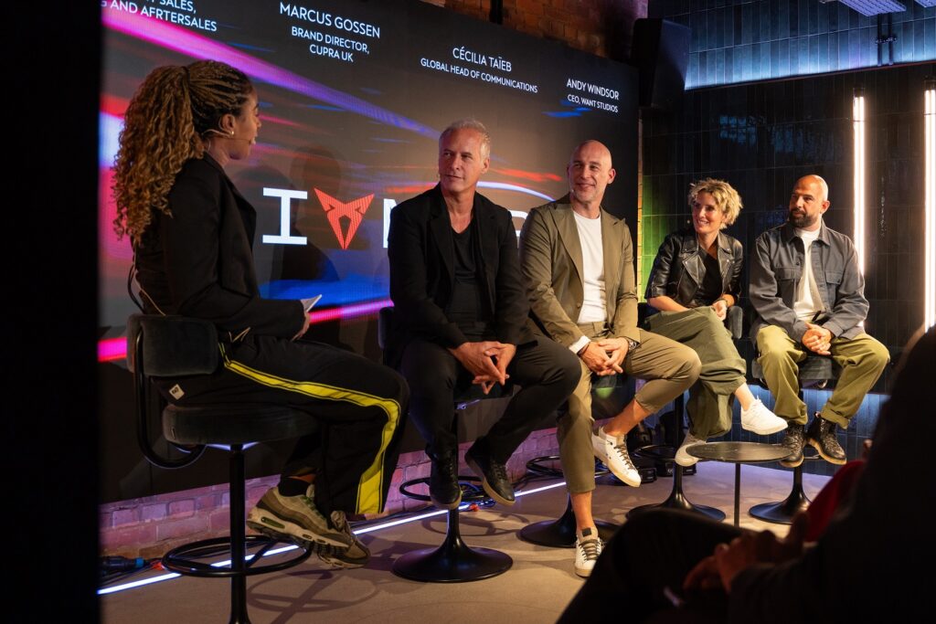 Στα εγκαίνια που πραγματοποιήθηκαν την προηγούμενη εβδομάδα παρευρέθηκαν οι Sven Schuwirth, Marcus Gossen, Cécilia Taïeb – Global Head of Communications CUPRA και ο Andy Windsor, CEO – Want Studios.