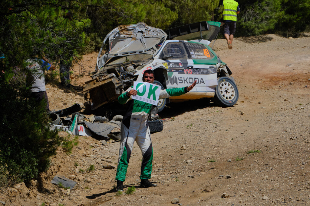 Εκτός αγώνα τέθηκαν οι Αμούτζας–Παναγιωτούνης, μετά από έξοδο που προκάλεσε σημαντική ζημιά στο Skoda Fabia Rally2, στερώντας τους τη δυνατότητα να επανεκκινήσουν έπειτα από τις ζημιές που έχει υποστεί το αγωνιστικό τους όχημα. Ωστόσο, το σημαντικό στη συγκεκριμένη περίπτωση είναι πώς και οι δύο οδηγοί είναι καλά στην υγεία τους.