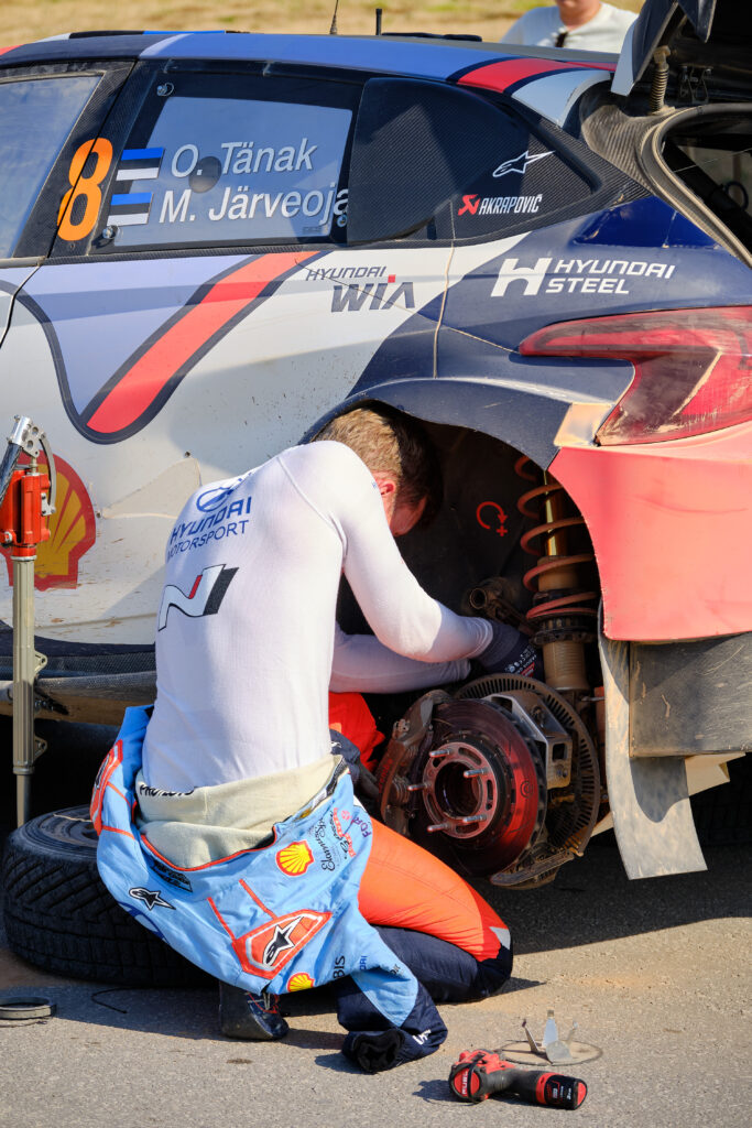 Αλώβητοι από τις έξι εξαιρετικά απαιτητικές ειδικές διαδρομές αναδείχθηκαν ελάχιστοι. Ο Ott Tanak, παρότι εξέφρασε επιφυλάξεις για τη συμπεριφορά του Hyundai i20 N Rally1 στα κλειστά κομμάτια, βελτιώθηκε καθοριστικά το απόγευμα και έκλεισε την ημέρα στην κορυφή. Μόλις 3,5 δευτερόλεπτα πίσω του βρίσκεται ο teammate του στη Hyundai Motorsport, Adrien Fourmaux, ο οποίος εκμεταλλεύτηκε ιδανικά τη σειρά εκκίνησης και κατάφερε να υπερκεράσει τον Sebastien Ogier.