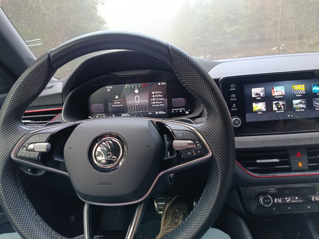 Το τιμόνι του Skoda Kamiq έχει μεγάλη διαδρομή για ρύθμιση σε ύψος και δίνει γρήγορη πρόσβαση στα κουμπιά του ταμπλό τα οποία είναι λογικά τοποθετημένα. Ευτυχώς, που η Skoda σκέφτηκε λογικά και αποφάσισε να διατηρήσει τα παραδοσιακά κουμπιά και χειριστήρια του κλιματισμού – κάτι που είναι αρκετά σπάνιο μεταξύ των μικρών SUV. Η εργονομία αυτή καθιστά το Kamiq εύκολο στη χρήση εν κινήσει αποτελώντας ένα αναζωογονητικό αυτοκίνητο σε έναν κόσμο όπου όλο και περισσότεροι ανταγωνιστές φορτώνουν τέτοιες συνηθισμένες ρυθμίσεις στα συστήματα infotaiment. Γιατί λοιπόν να μην του δώσουμε 5 αστέρια αφού τα αξίζει;