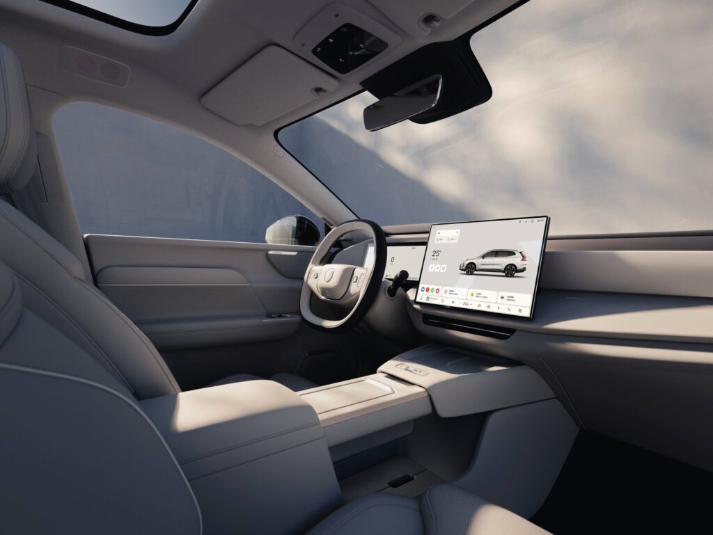Στο εμπρός μέρος, μία κλειστή μάσκα -αναφορά στα αμιγώς ηλεκτρικά Volvo- που μοιάζει με ασπίδα συνδυάζεται με ενεργό κλείστρο μάσκας το οποίο ρυθμίζεται αυτόματα, βελτιστοποιώντας την αεροδυναμική, τον κλιματισμό στην καμπίνα και την ψύξη. Αυτό το χαρακτηριστικό βοηθά στη βελτίωση της ενεργειακής αποδοτικότητας και επεκτείνει την αυτονομία.