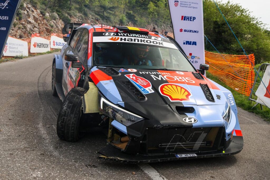 Σταθερά συγκεντρωμένος στη βελτίωση και στην στρατηγική της ΤΟΥΟΤΑ έδειξε ότι παραμένει ο Ιάπωνας οδηγός της Toyota Gazoo Racing Takamoto Katsuta, o oποίος ενώ βρισκόταν δεύτερος στη γενική στο τελευταίο σκέλος της Κυριακής, τελευταίας ημέρας του Rally Croatia, πίσω από το μεγάλο φαβορί Thierry Neuville, άρπαξε την ευκαιρία που πετάχτηκε την τελευταία στιγμή μπροστά του στην Wolf Power Stage, μετά από ένα απρόσμενο χτύπημα του οδηγού της Hyundai σε ένα τσιμεντένιο μπλοκ το οποίο κατέστρεψε την μπροστινή δεξιά ανάρτηση του i20 N Rally1 του.