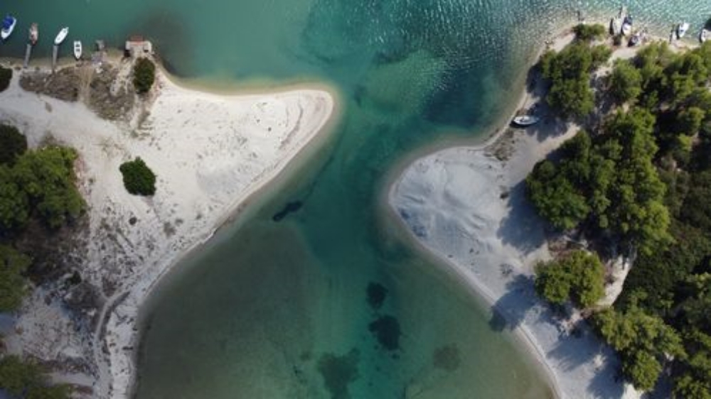 Είναι αδιαμφισβήτητα ένα από τα πιο όμορφα μέρη της Χαλκιδικής που σε εντυπωσιάζει ακόμη περισσότερο όταν την κοιτάς από ψηλά. Δεν είναι τυχαίο ότι πολλοί αποκαλούν το σημείο «Γαλάζια Λίμνη» της Χαλκιδικής. Το χρώμα των νερών και ο τρόπος με τον οποίο απλώνεται στην Κασσάνδρα σου δίνουν αυτή την αίσθηση.