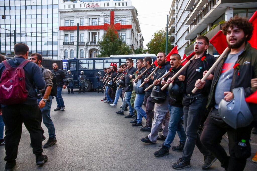 Λίγο μετά τις 17:00, ο κύριος κορμός της πορείας ξεκίνησε από την πλατεία Κλαυθμώνος. Το μπλοκ του ΚΚΕ, που είχε σημείο προσυγκέντρωσης στην Ομόνοια, ξεκίνησε σε απόσταση απ’ την κεφαλή της πορείας, όπως μεταδίδει το ΑΠΕ-ΜΠΕ.