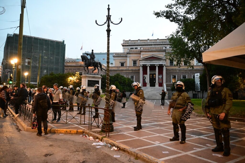 -Διαδηλωτές επιχείρησαν να συνεχίσουν την πορεία προς την πρεσβεία του Ισραήλ. Οι αστυνομικές δυνάμεις τους ανέκοψαν στο ύψος της Πανόρμου.